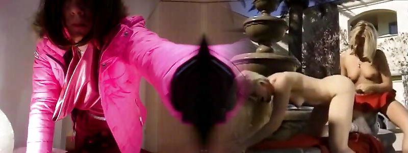 04:00jess silk railing fake penis in long sleeve pinkish satin dress and shiny purple jacket with blondie wig